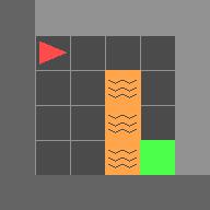 This environment is based on one of the DeepMind AI safety gridworlds. The agent starts in the top-left corner and must reach the goal which is in the top-right corner, but has to avoid stepping into lava on its way. The aim of this environment is to test an agent's ability to generalize. There are two slightly different variants of the environment, so that the agent can be trained on one variant and tested on the other.