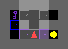 The agent has to pick up a box which is placed in a corner of a 3x3 maze. The doors are locked, the keys are hidden in boxes and doors are obstructed by balls. This environment can be solved without relying on language.