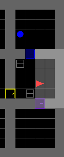 The agent is randomly placed within a room with one red and one blue door facing opposite directions. The agent has to open the red door and then open the blue door, in that order. Note that, surprisingly, this environment is solvable without memory.