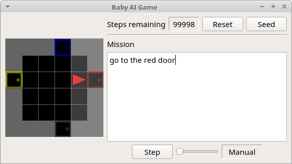 (eg: "go to the red door"). It receives a positive reward for performing the