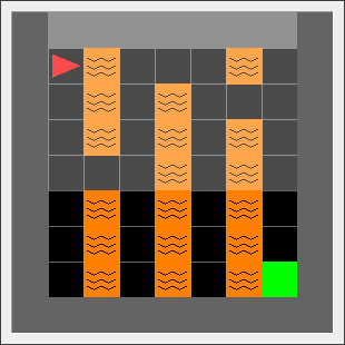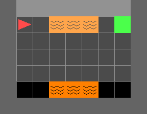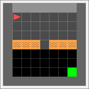 This environment is based on one of the DeepMind AI safety gridworlds. The agent starts in the top-left corner and must reach the goal which is in the top-right corner, but has to avoid stepping into lava on its way. The aim of this environment is to test an agent's ability to generalize. There are two slightly different variants of the environment, so that the agent can be trained on one variant and tested on the other.