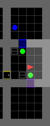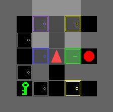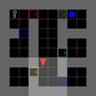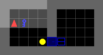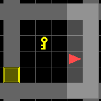 This environment is similar to the locked room environment, but there are multiple registered environment configurations of increasing size, making it easier to use curriculum learning to train an agent to solve it. The agent has to pick up an object which is behind a locked door. The key is hidden in another room, and the agent has to explore the environment to find it. The mission string does not give the agent any clues as to where the key is placed. This environment can be solved without relying on language.