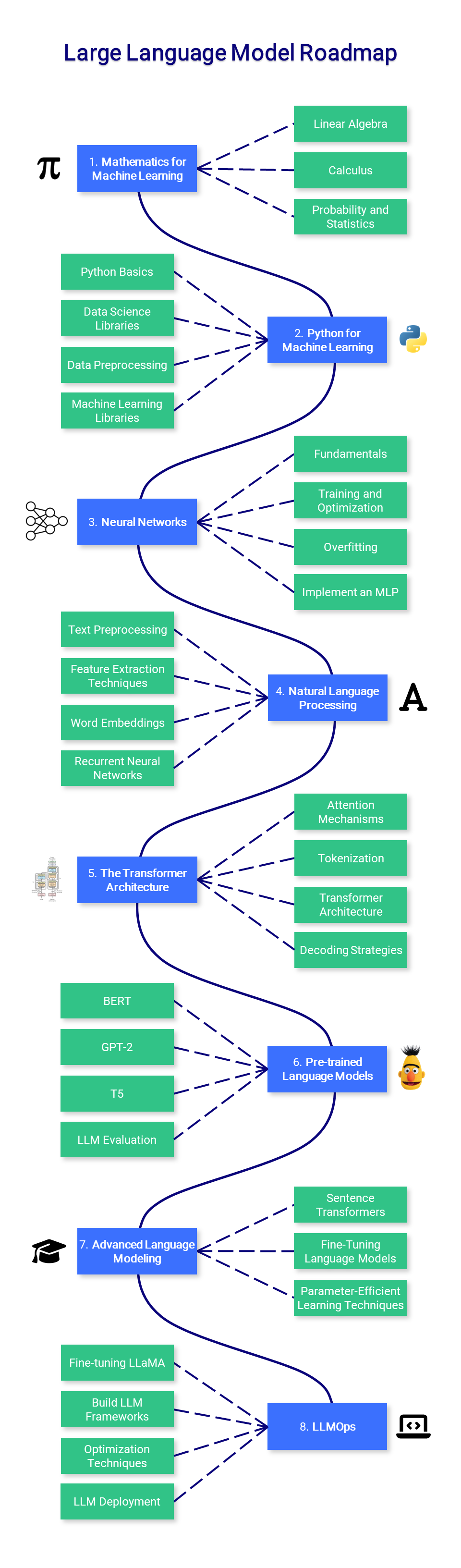 • Probability and Statistics: These are crucial for understanding how models learn from data and make predictions. Key concepts include probability theory, random variables, probability distributions, expectations, variance, covariance, correlation, hypothesis testing, confidence intervals, maximum likelihood estimation, and Bayesian inference.