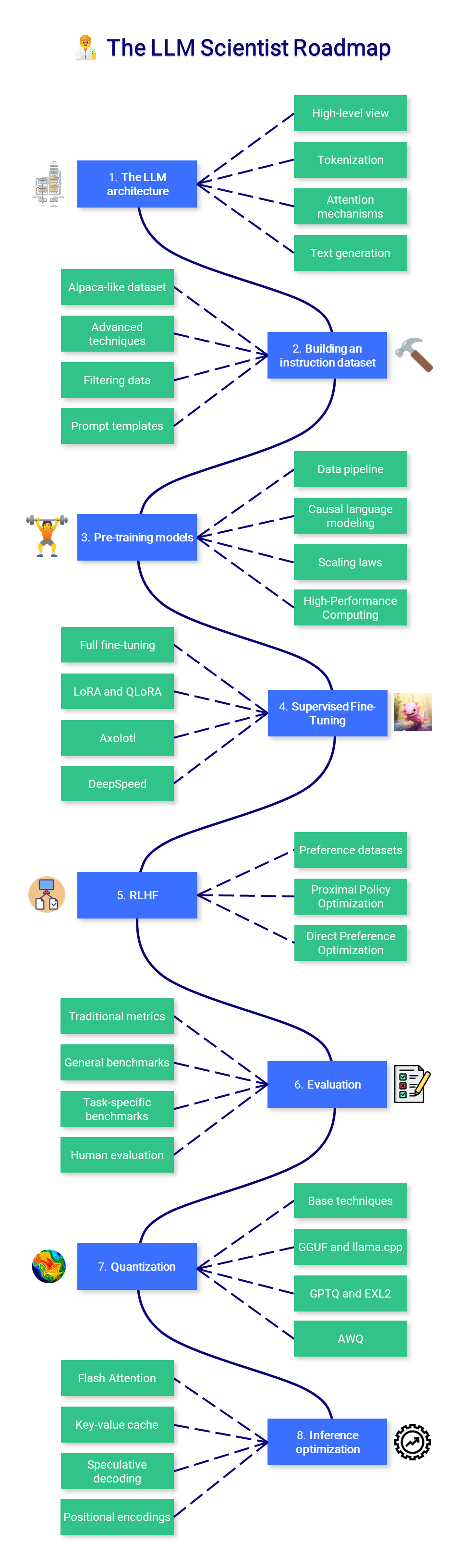 2. 🧑‍🔬 The LLM Scientist focuses on learning how to build the best possible LLMs using the latest techniques