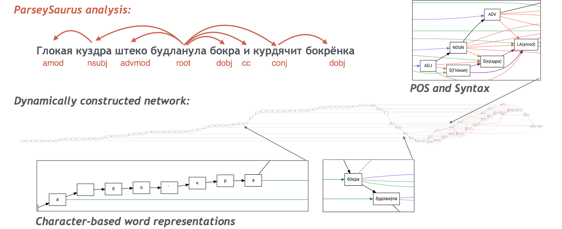 DRAGNN: code, documentation, paper implements Dynamic Recurrent Acyclic Graphical Neural Networks (DRAGNN), a framework for building multi-task, fully dynamically constructed computation graphs. Practically, we use DRAGNN to extend our prior work from Andor et al. (2016) with end-to-end, deep recurrent models and to provide a much easier to use interface to SyntaxNet. DRAGNN is designed first and foremost as a Python library, and therefore much easier to use than the original SyntaxNet implementation.