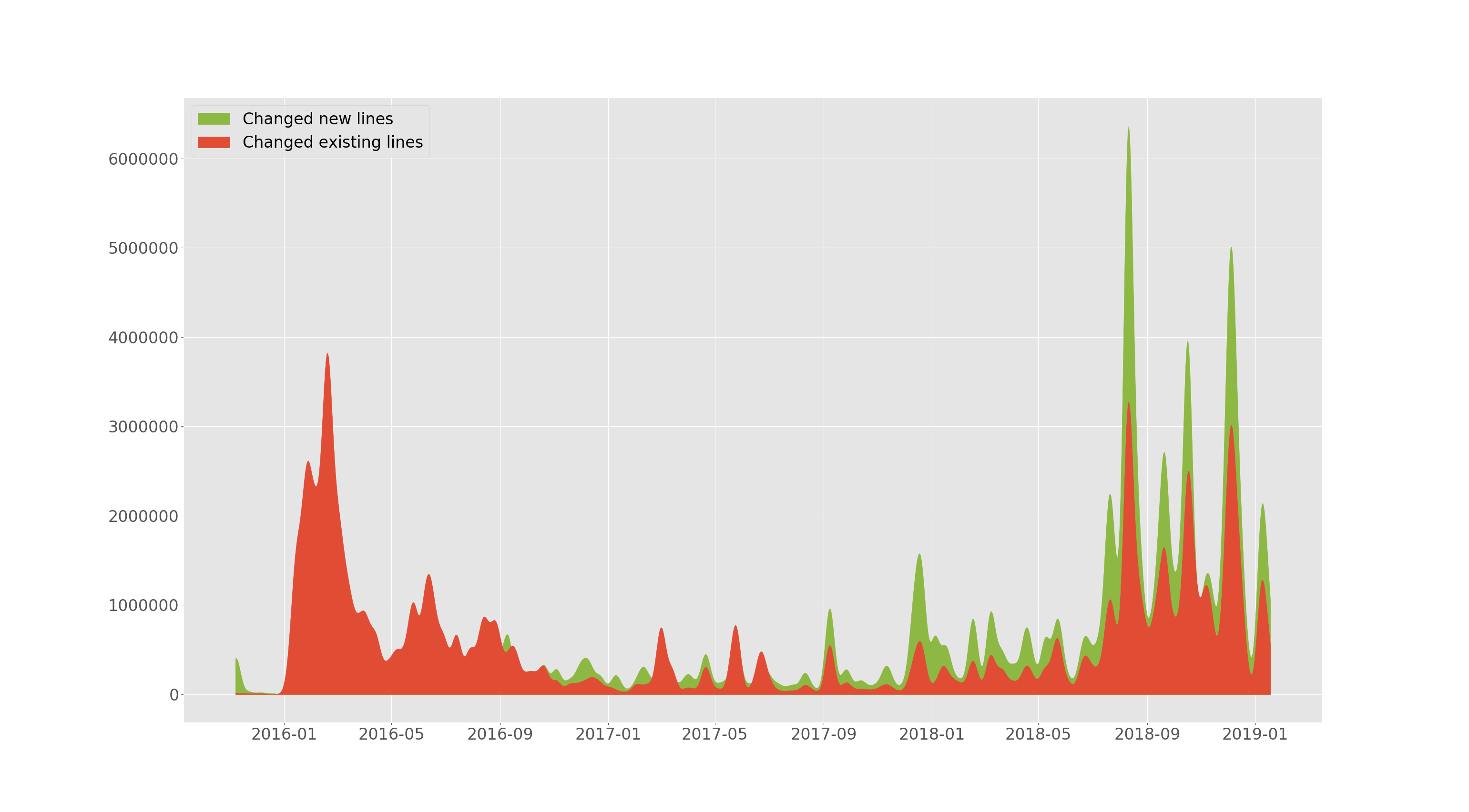 --devs from the previous section allows to plot how many lines were added and how many existing changed